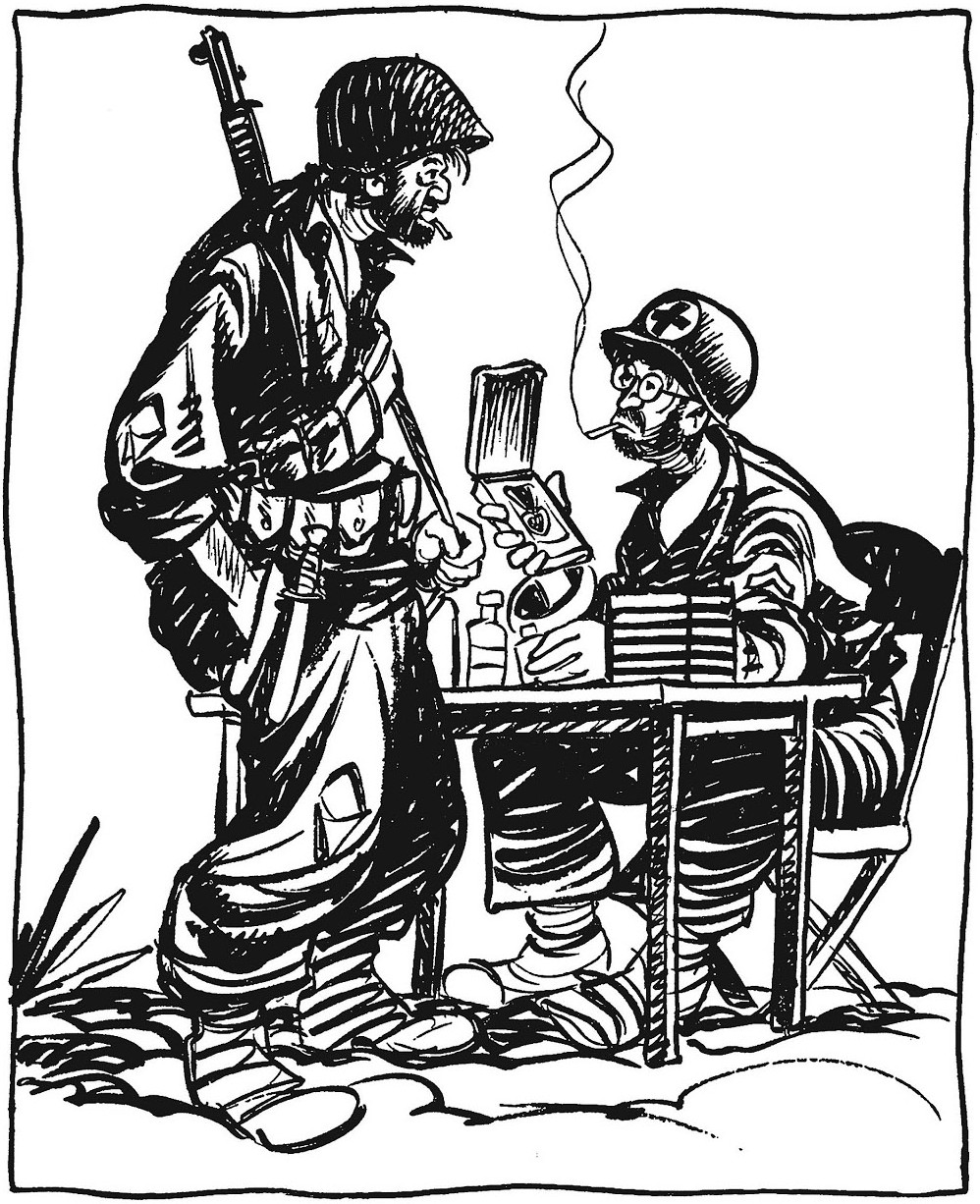 “Just gimme a coupla aspirin. I already got a Purple Heart.”